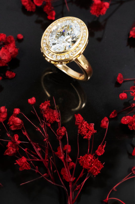 Oval Diamond Engagement Ring with Diamond Halo and Filigree