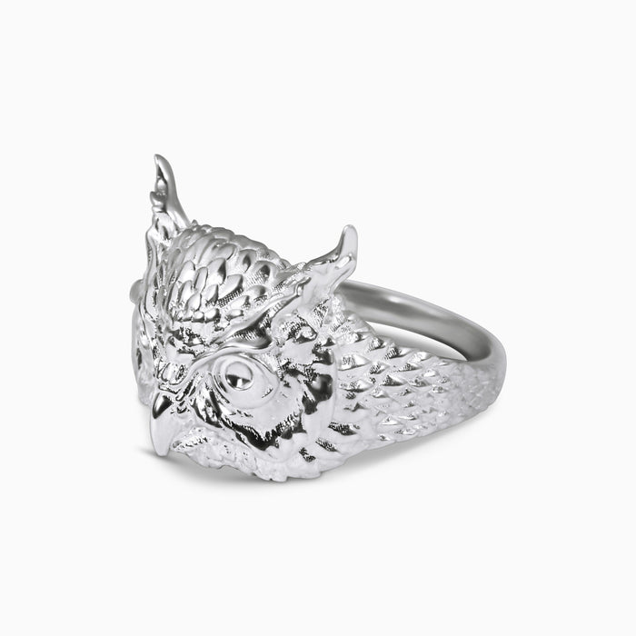 Sauvage Owl Nocturne Ring - This ring captures the exquisite details of a great horned owl. The owl is a great night hunter seeing in the dark to capture its prey, symbolizing the ability to see the truth, move through change, and use inner wisdom for greater transformations.