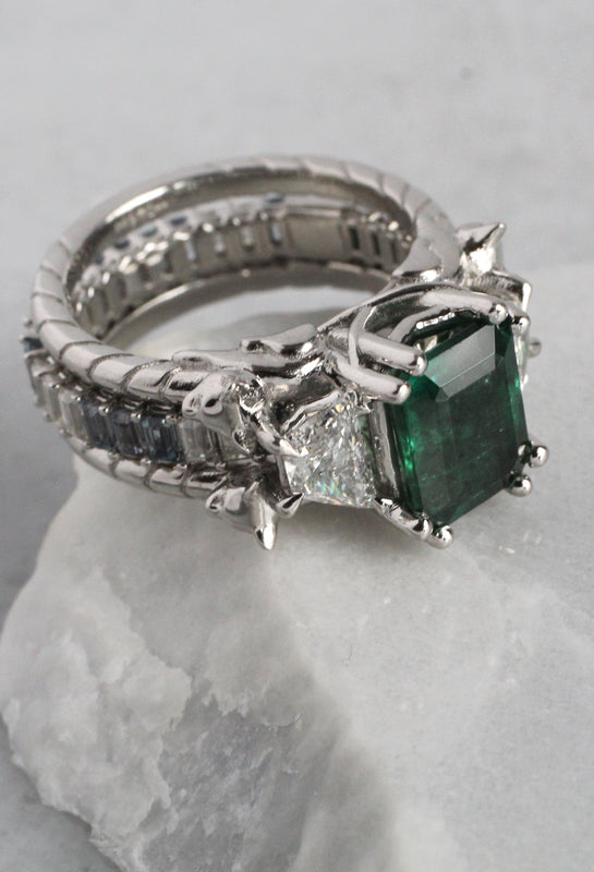 As a private custom jewelry designer, I offer an intuitive design process entirely tailored to you. Every detail begins with your vision and unfolds into a piece that is both personal and enduring. My work is bespoke, edgy, modern, and inclusive, specializing in alternative bridal jewelry, heirloom transformations, and one-of-a-kind creations made from scratch.